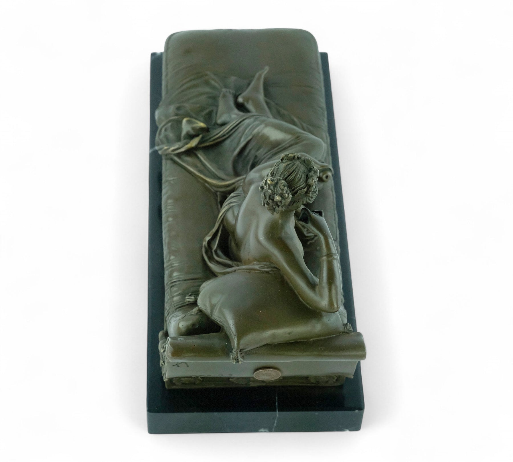 A beautiful bronze sculpture depicting Pauline Bonaparte on a chaise longue, representing Venus Triumphant (Venus Victrix).