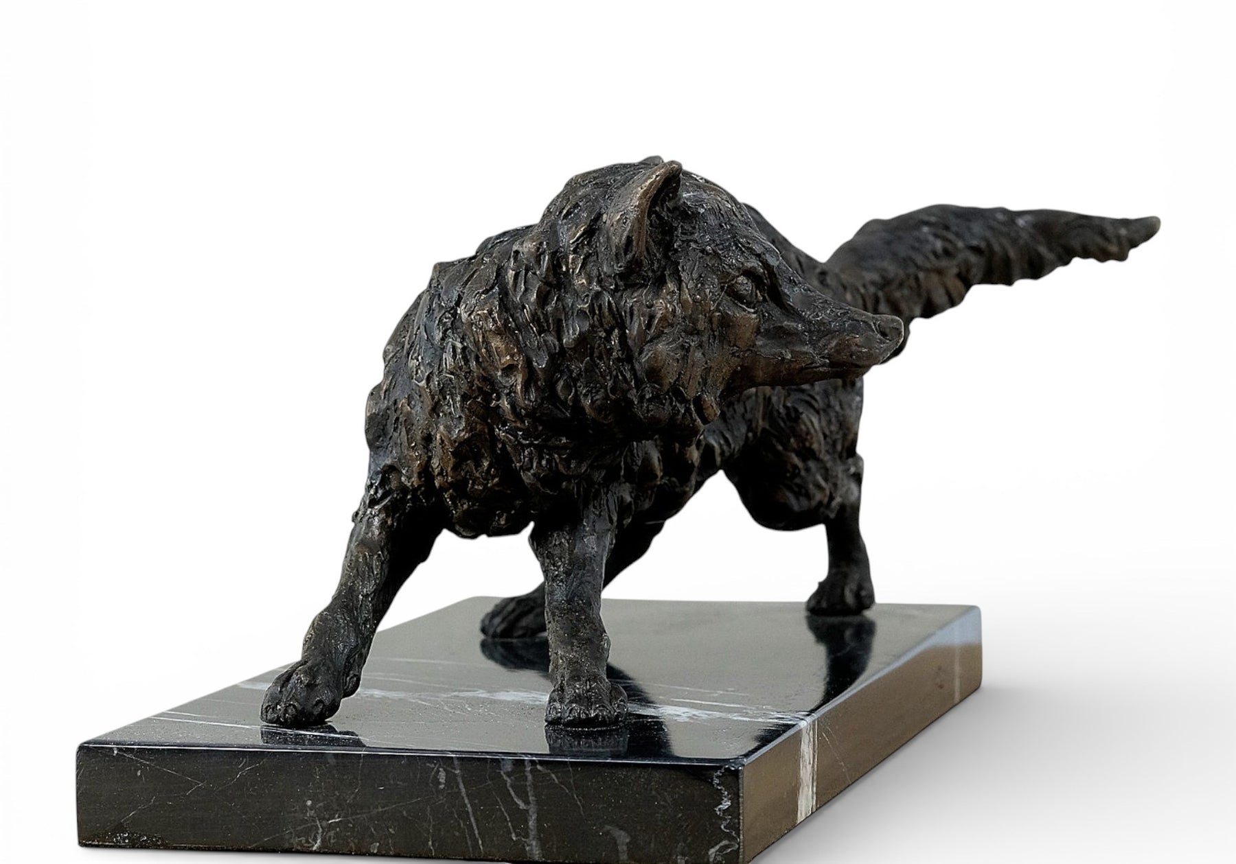 This realistic bronze fox sculpture captures the charm and elegance of a wily fox in true-to-life detail. Crafted from high-quality bronze and mounted on a beautiful marble plateau.