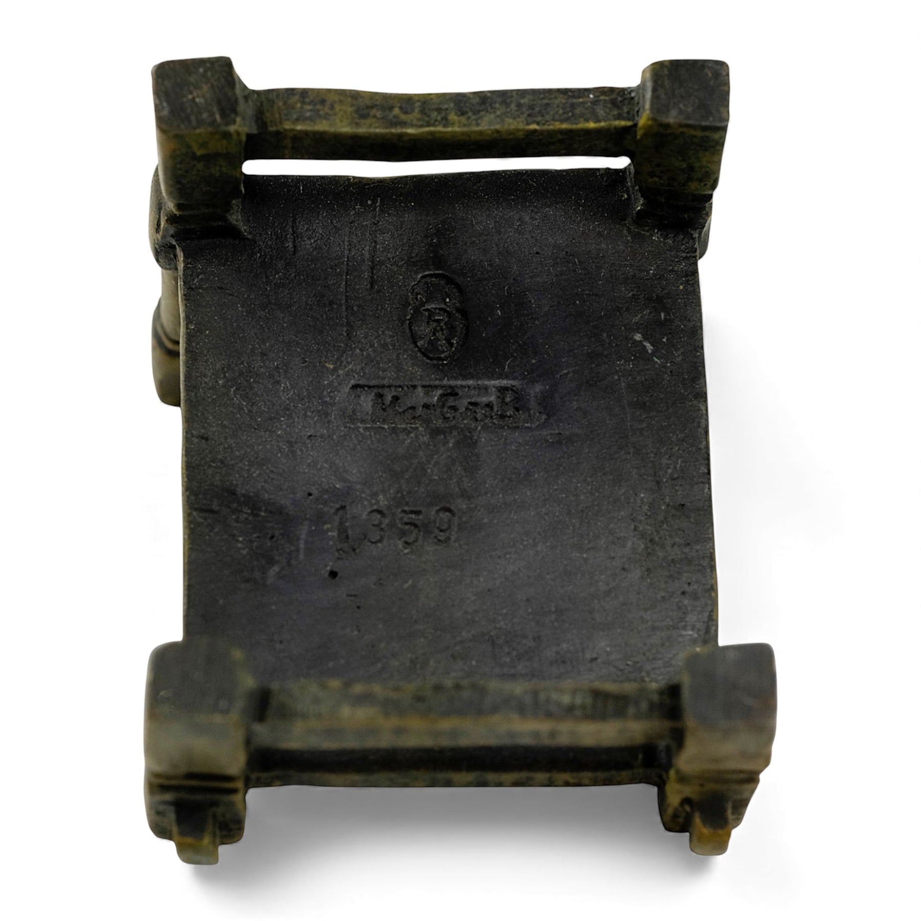 The sculpture is made in the manner of the Viennese sculptor Franz Xavier Bergman. It is numbered and marked with the letter 'B' in a vase, and also signed 'ManGreb' (Bergman in reverse).