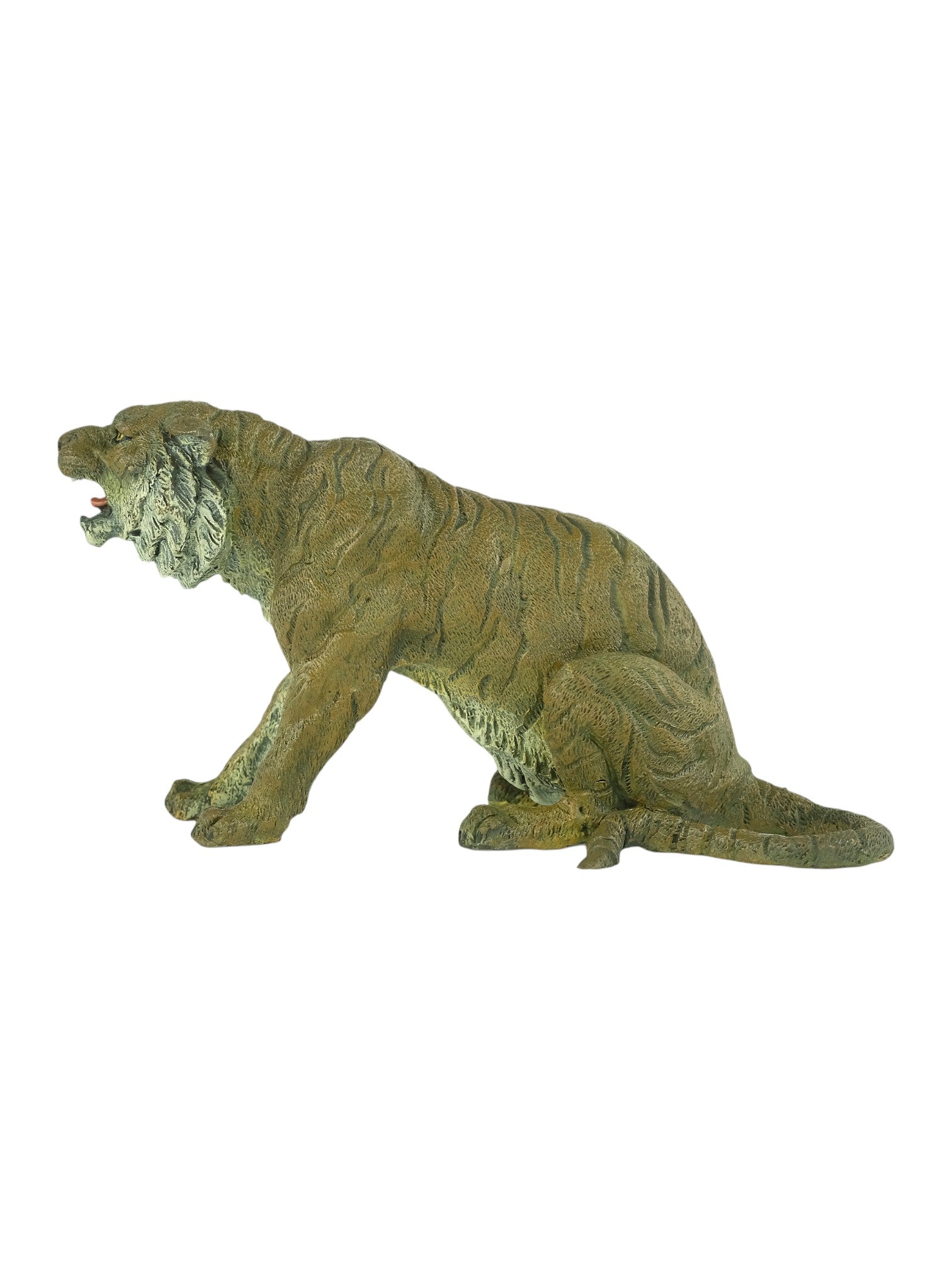 Bronze sculpture of a sitting tiger in Vienna bronze style