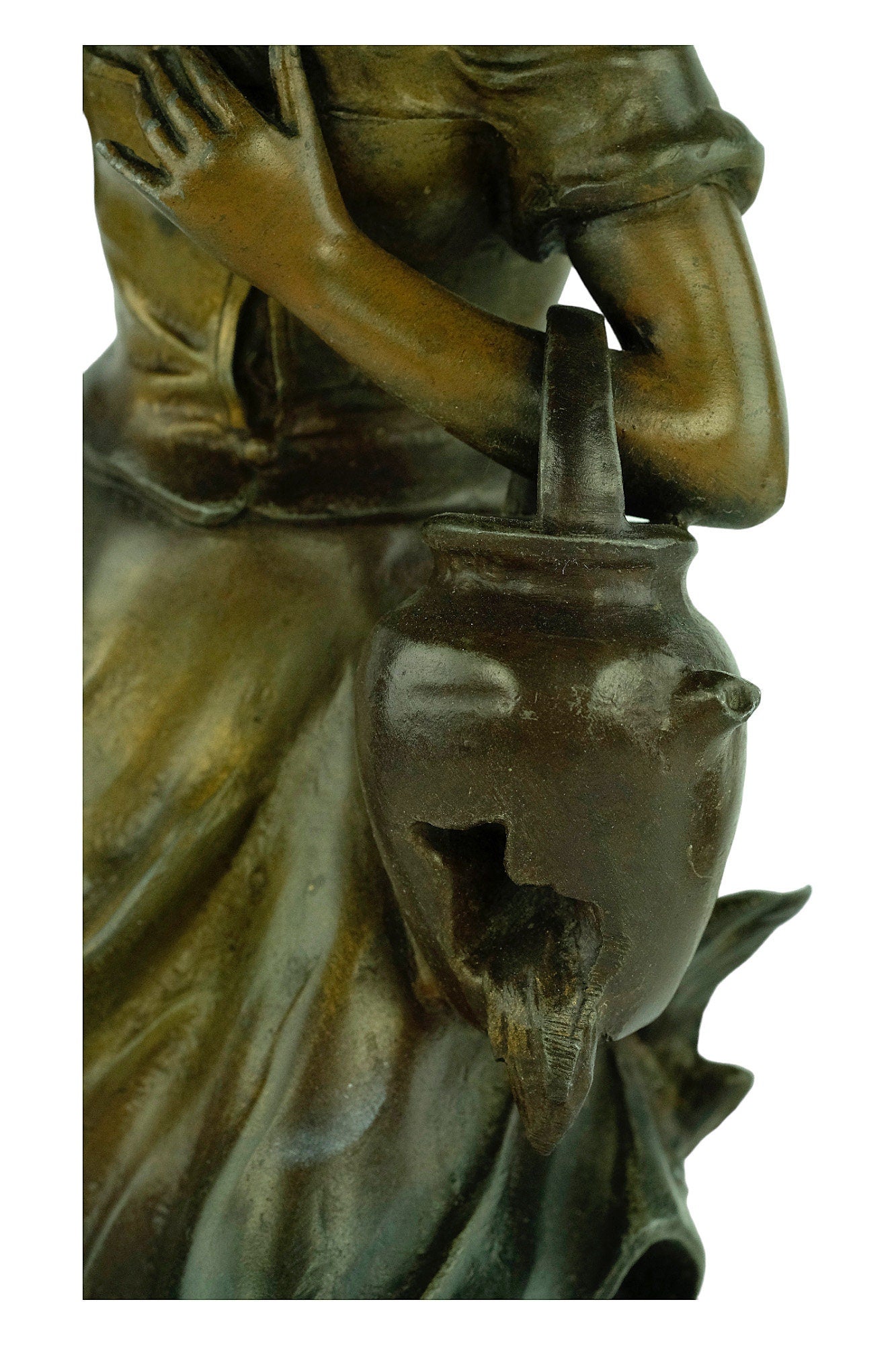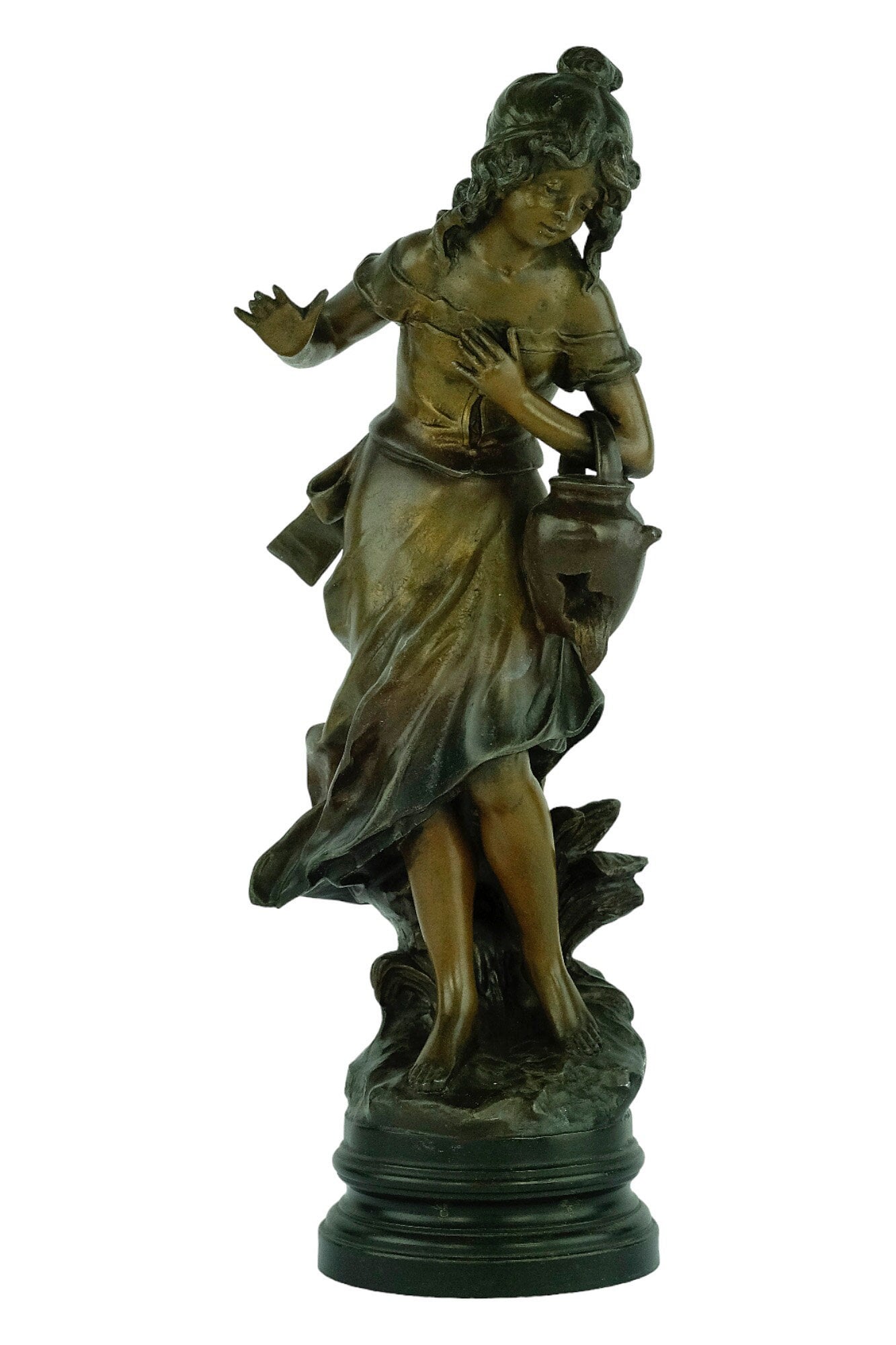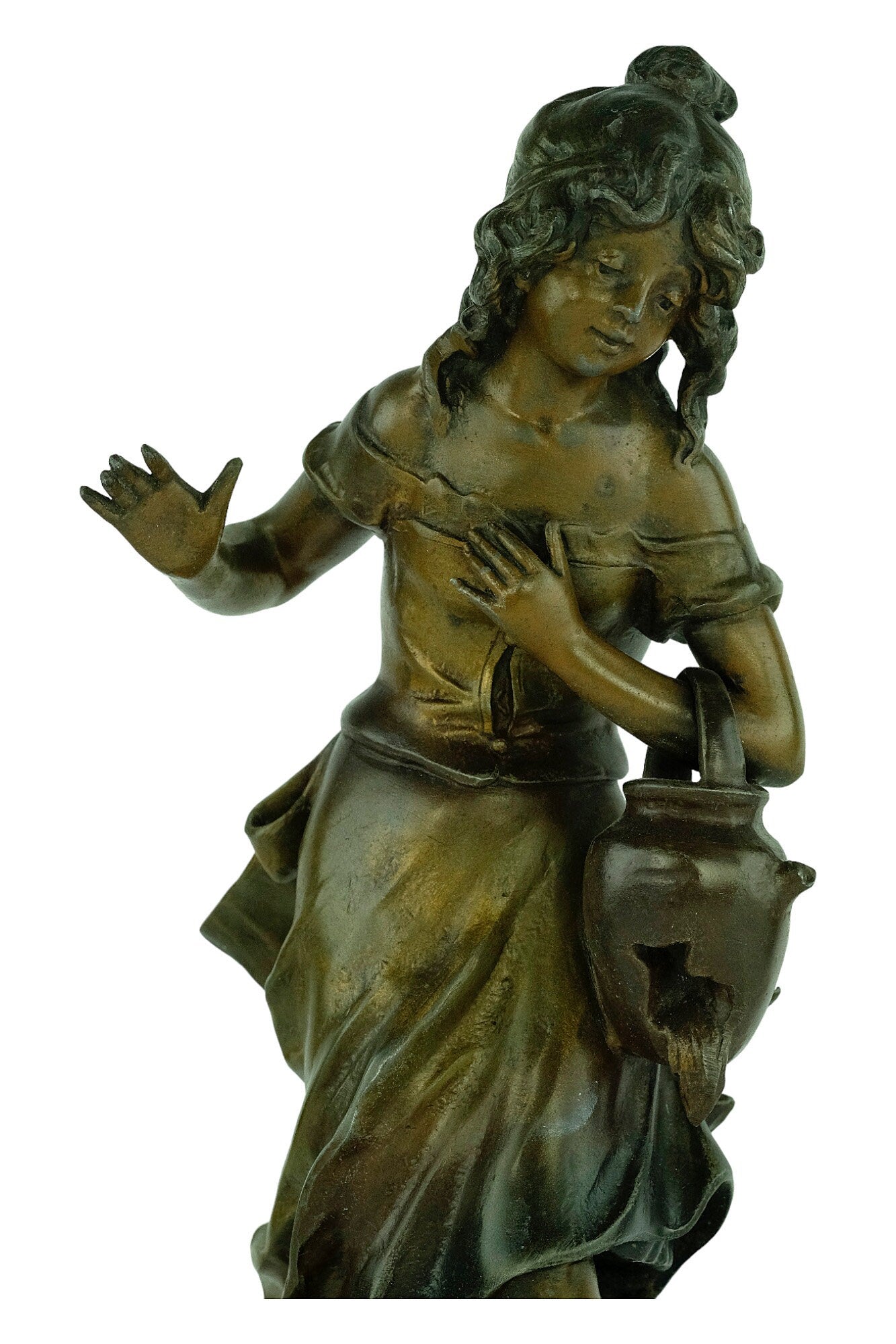 Antiek bronzen beeld van een meisje met een gebroken kruik door Francois Moreau