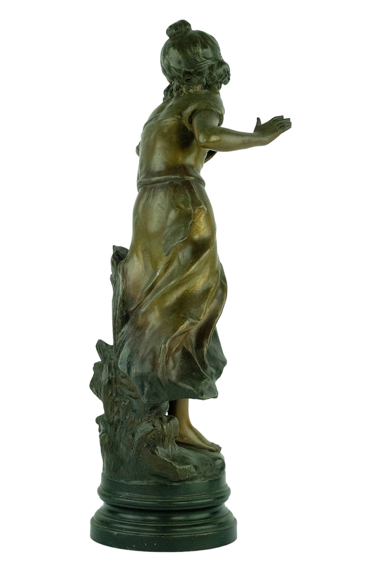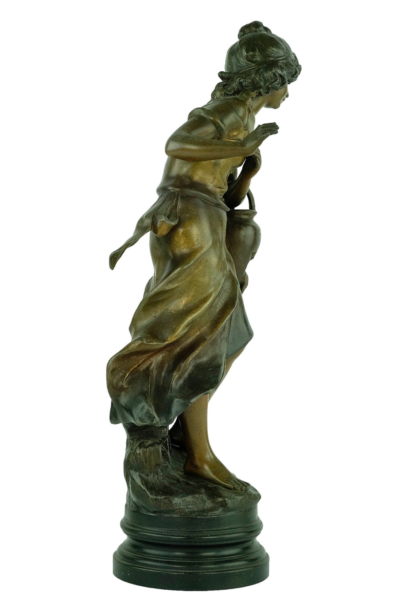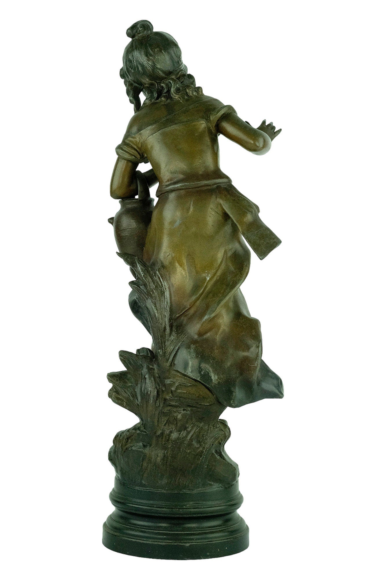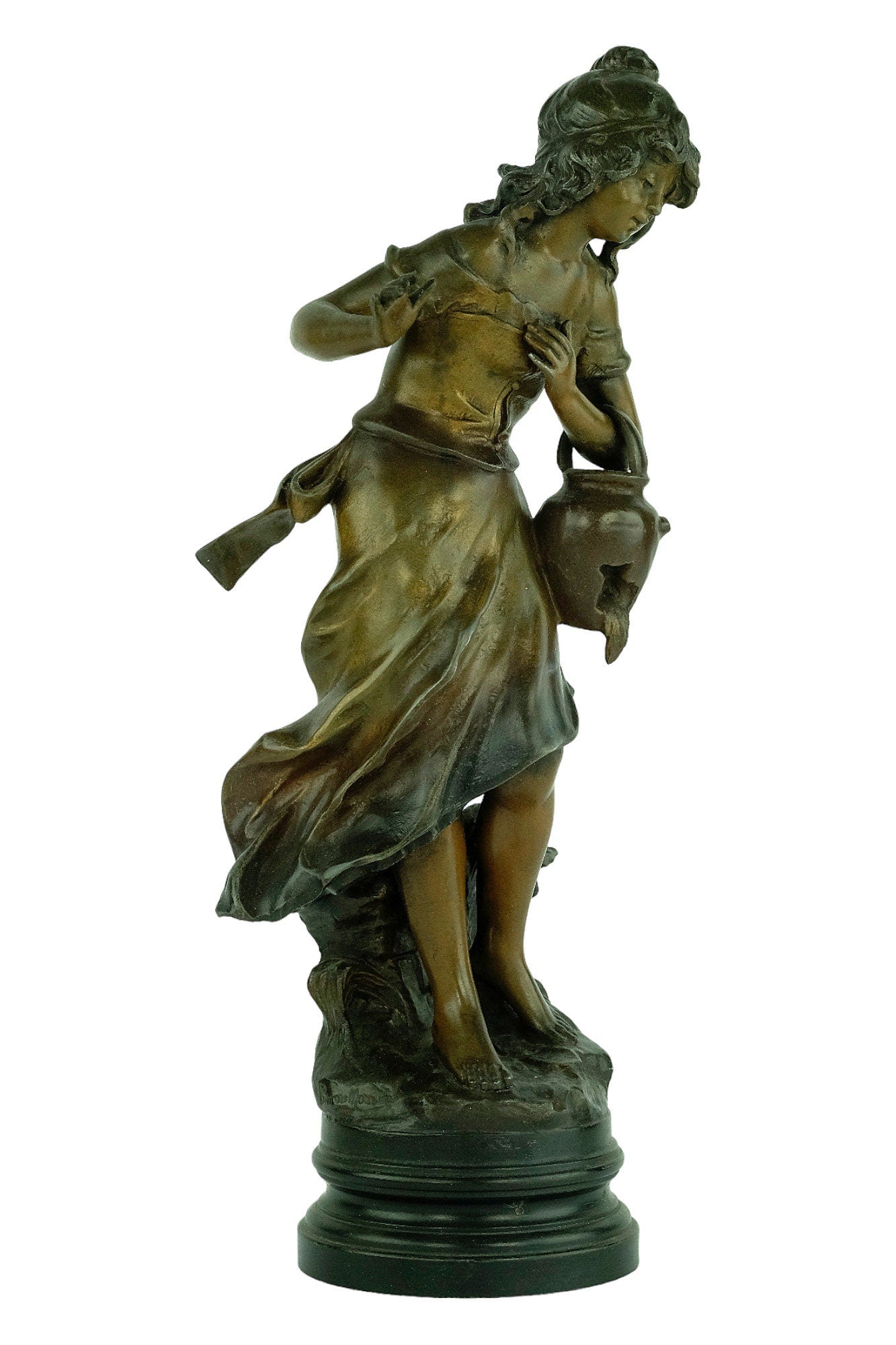 Antiek bronzen beeld van een meisje met een gebroken kruik door Francois Moreau