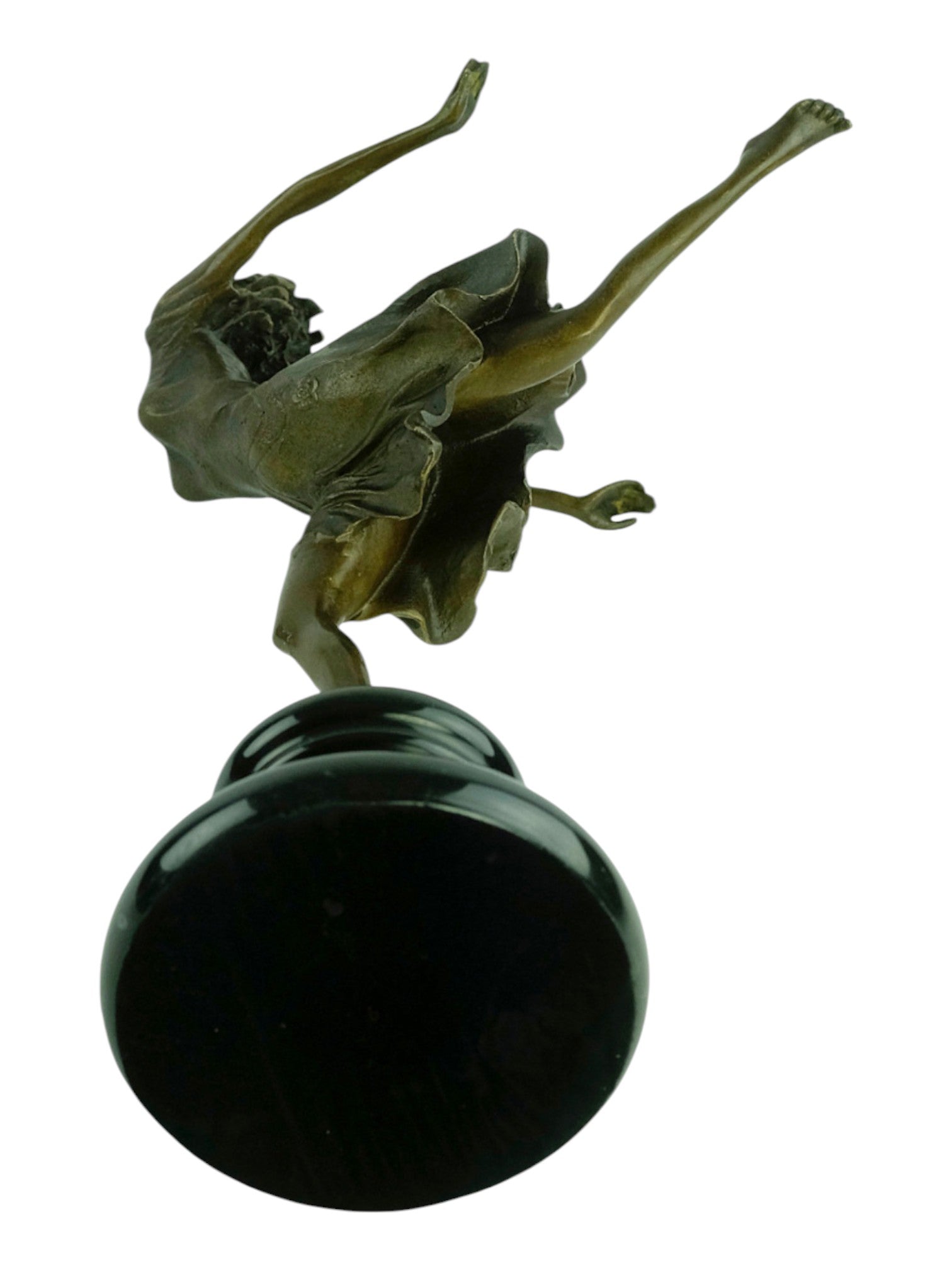 Een prachtig bronzen beeld van een jonge vrouw die sierlijk danst.